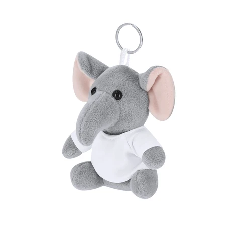 Llavero elefante de peluche con camiseta personalizable con anilla metálica para fácil transporte, ideal para sublimación.