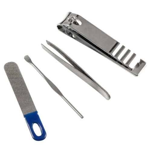 Set de Manicure con Llavero, en tubito rectangular plateado.