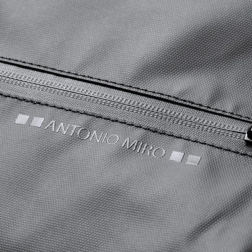 Maletín de Antonio Miró de calidad premium en resistente poliéster 600D. De sobrio diseño y con compartimento acolchado para portátil de hasta 15 pulgadas. Con cómoda asa de transporte reforzada, cierres de cremallera con tiradores metálicos y bolsillo frontal. Logotipo de la marca en frontal.
