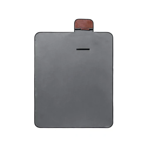 Manta de picnic premium fabricada en resistente poliéster RPET de 160g/m2 y acabado en gris. Plegable y con cierre de velcro solapa y asa en cuero reciclado con ribetes reforzados. En tamaño 120x150 cm, con base aislante en PEVA y lado para sentarse de agradable tacto. De fácil plegado y tamaño compacto, con distintivo cuero reciclado en la solapa. El material RPET se elabora a partir de plástico reciclado, para así fomentar la reutilización de residuos plásticos y ayudar a la sostenibilidad del planeta.El cuero reciclado rescata las fibras desechadas en los procesos de fabricación del cuero, minimizando el desperdicio de material, contribuyendo a reducir el impacto ambiental y manteniendo a la vez sus propiedades originales.