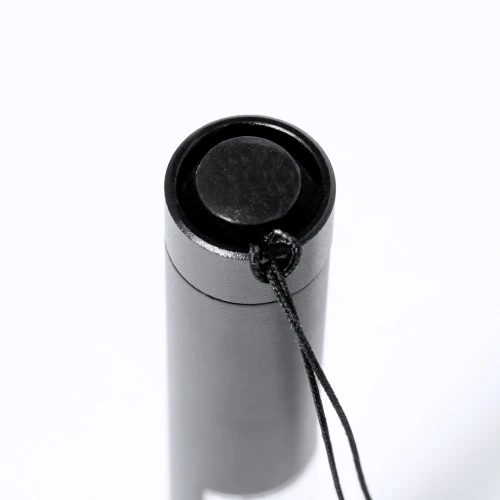 Versátil martillo de emergencia. Cuenta con tres funciones: una potente linterna con 6 luces COB alimentadas por pilas de botón (incluidas), una punta metálica rompecristales y una cuchilla cortacinturones. Zona imantada en parte superior y tira para una mejor sujeción. Presentado en caja individual kraft.