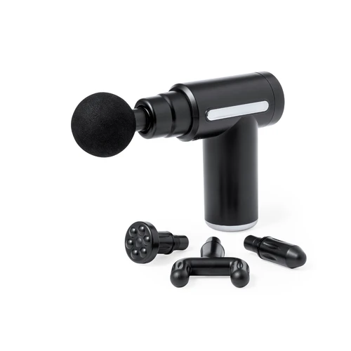 Masajeador eléctrico. Ayuda a relajar los músculos, aliviar los efectos del entrenamiento, liberar tensión y revitalizar el cuerpo. Con dos posiciones de intensidad y 4 cabezales para usar en distintas zonas del cuerpo. Batería recargable de larga duración de 1200 mAh - cable de carga USB incluido-. Disponible manual de instrucciones en español e inglés.