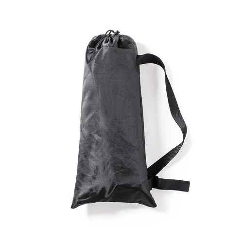 Mesa plegable con resistente cuerpo de metal tubular y superficie en resistente poliéster 600D. Con costuras reforzadas y refuerzos antideslizantes en las patas. De fácil plegado y tamaño compacto, presentada en funda individual.
