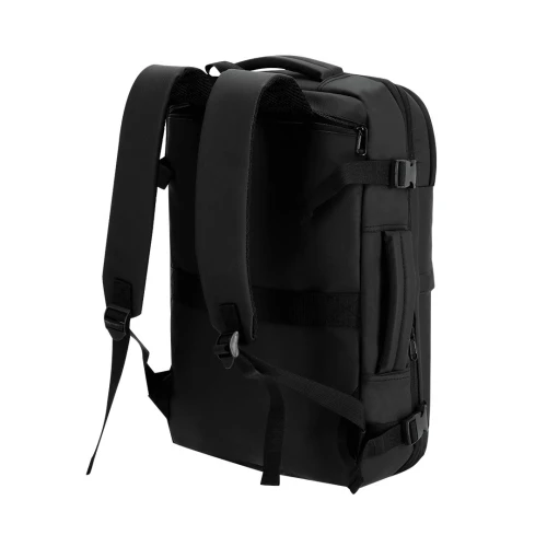 Mochila al vacío con elegante diseño en suave PU incluye bomba de vacío de 30W. Cuenta con un compartimento principal extensible, en el se encuentra un bolsillo interior de vacío, y bolsillos en malla. En la parte fontal dispone de un bolsillo acolchado para portátil de hasta 15”, y un bolsillo inferior. Laterales con hebillas para ajuste. Espalda y cintas acolchadas, y cinta para trolley. Cintas con posibilidades de guardarse en un bolsillo, haciendo que tenga función de maleta de mano. Ideal para viajes gracias a su gran capacidad y sus múltiples aplicaciones.