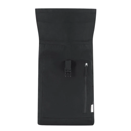 Mochila fabricada en material 100% canvas reciclado. Compartimento principal de gran capacidad con cierre de hebilla de seguridad y velcro, incluyendo un bolsillo frontal con cierre de cremallera invisible. Bolsillo lateral abierto de rápido acceso y asa superior. Con cintas para los hombros ajustables y etiqueta exterior con logotipo Algodón Reciclado.
