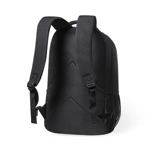 Mochila urban acolchada de línea nature, fabricada en resistente 600D RPET, elaborado a partir de plástico reciclado, para así fomentar la reutilización de residuos plásticos y contribuir a la sostenibilidad del planeta. Bolsillo principal con cierre de cremallera, con banda reflectante y compartimento exterior con tiras elásticas y ajustador. Bolsillos laterales de malla e interior con bolsillo acolchado para portátil de hasta 15 pulgadas y tablet de hasta 12 pulgadas. Cintas acolchadas ajustables para hombro, con asa de transporte reforzada y acolchada. Distintivo RPET en etiqueta exterior.
