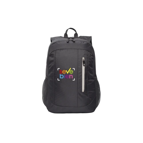 32 x 47 x 17 cm. Capacidad 25 litros aprox. Jacquard Poliéster 420D. Mochila portanotebook. Dos compartimentos con cierre. Compartimento principal con división acolchada porta notebook de hasta 15” con bolsillo y el segundo con tres espacios contenedores. Bolsillo frontal con cierre en color y dos bolsillos de red laterales. Cierres metálicos con tiradores de goma con detalles de color. Correas regulables y espalda acolchadas.