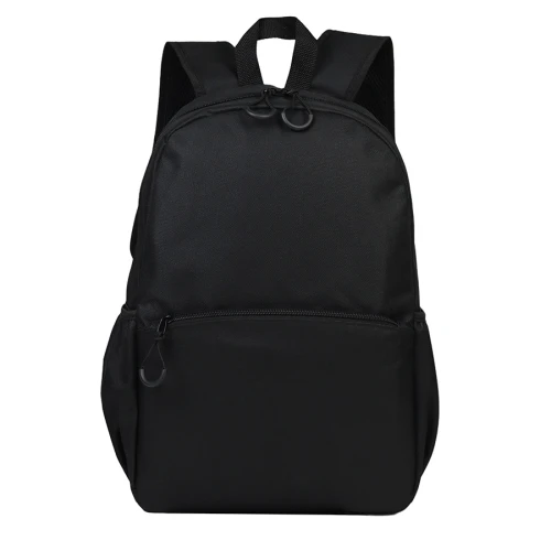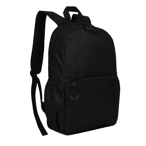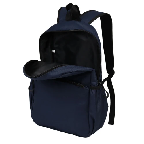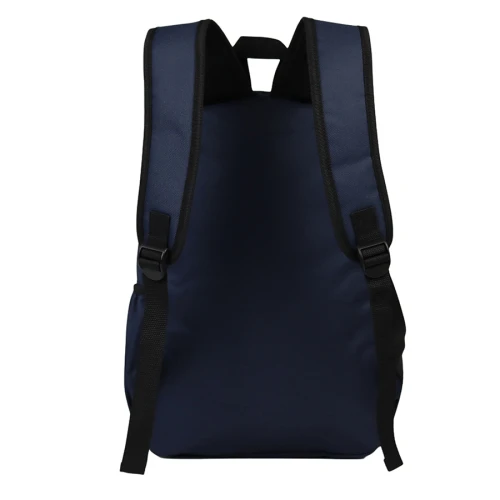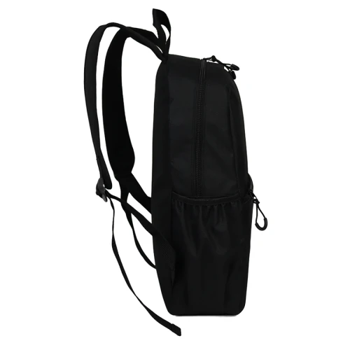 Mochila de poliéster 600D/PVC, modelo "CLASICA". Capacidad 14 litros, tamaño 28 x 42 x 12 cm. Incluye compartimento principal, bolsillo delantero y 2 compartimentos laterales para guardar botellas. Con forro interior de nylon negro. Correas ajustables.
