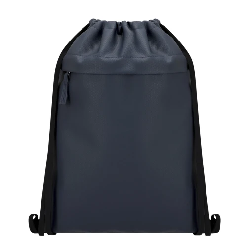 Mochila de cuerdas fabricada en suave PU combinado con resistente poliéster 600D. Incluye funcional bolsillo frontal con cierre de cremallera y tirador a juego en PU.