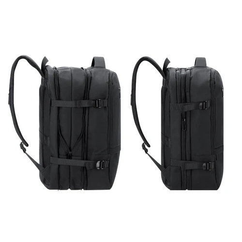 Mochila multifunción extensible confeccionada en resistente PU.Cuenta con una excelente transpirabilidad en la zona trasera y en la cinta para los hombros, facilitando la disipación del calor gracias a sus cintas y respaldo acolchados. Las cintas anchas están diseñadas para aliviar la presión en los hombros, permitiendo llevar la mochila cómodamente durante largos periodos.Perfecta para cualquier situación por tener múltiples compartimentos:2 bolsillos frontales de diferentes tamaños.1 bolsillo trasero antirrobo para mayor seguridad.3 compartimentos grandes centrales con doble tirador, uno de ellos portatodo, un bolsillo central de gran capacidad para guardar ropa y/o complementos con organizador en su interior, y otro perfecto para llevar portátil de hasta 17 pulgadas.Incluye cinta para fijarla en trolley y maletas. Ajuste de cierre en el pecho.Bolsillo en cinta izquierda para hombros, ideal para guardar llaves u objetos de pequeño tamaño. Además, cuenta con un puerto de carga USB y con correa pectoral con hebilla para un ajuste seguro. Perfecta para viajes o para el día a día por sus cintas ajustables, adaptándose a todo estilo de vida.