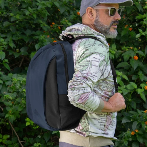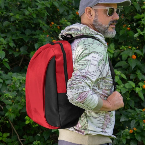 Tu compañera perfecta para la ciudad.Mochila urbana. Bitono (cuerpo principal de un color y laterales, espalda, correas, asa y cierres en color negro). Compartimento principal con cierre. Amplio compartimento frontal con cierre lateral vertical. Interior forrado y reforzado. Correas ajustables y espalda acolchada. Tiradores de cierres metálicos.Medidas: 43 x 31 x 17 cm.