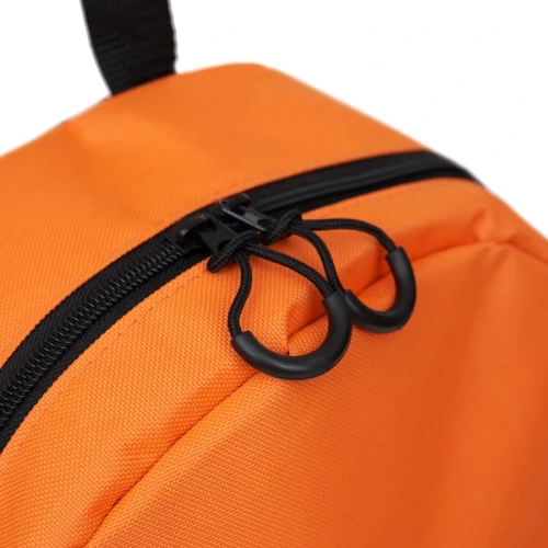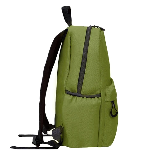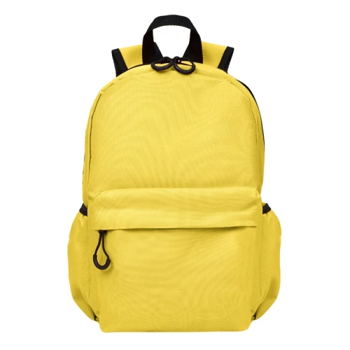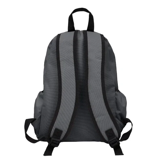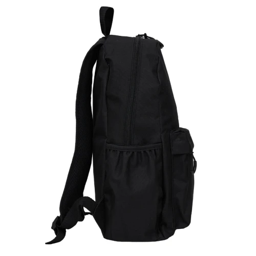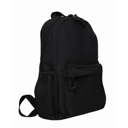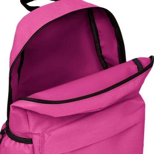 Mochila confeccionada en Polyester, con 2 bolsillos frontales con cierre y 2 bolsillos laterales elásticos porta botellas. Cuenta con correas regulables. Medidas: 42 cm alto | 27cm ancho | 12cm profundidad. Capacidad 13.5 lts.
