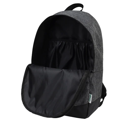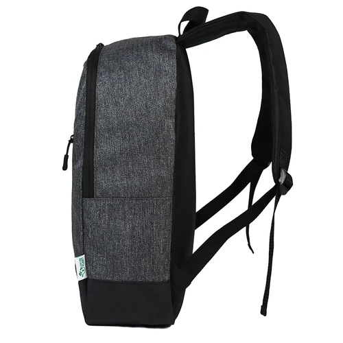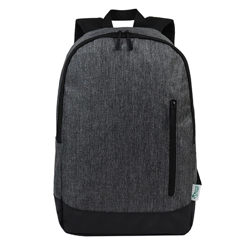 Mochila modelo "LOOK", fabricada en tela reciclada RPET, con base de eco-cuero PU 210D y parte posterior de poliéster 600D/PVC. Capacidad 18 litros, tamaño 29 x 44 x 14 cm. Incluye compartimento principal + bolsillo delantero lateral. Incluye forro interior de nylon negro. Correas ajustables.