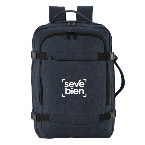 Viaja con todo lo que necesitas.Mochila carry on con 4 compartimentos acolchados. Compartimento principal central con cierre de apertura 360° y elástico con hebilla para contener la ropa en un viaje de trabajo. Compartimento posterior con cierre y portanotebook de hasta 17 pulgadas. Compartimento frontal, exterior con cierre horizontal e interior con bolsillos organizadores. Dos asas, vertical y horizontal para un mejor traslado. 4 correas de hebillas ajustables al volúmen que se traslade. Espalda acolchada con red que permite ventilación. Tira para sujetar la mochila en la manija extensible de un equipaje de mano. Correas acolchadas. Tiradores de cierre plásticos. Medidas: 32 x 46 x 20 cm.