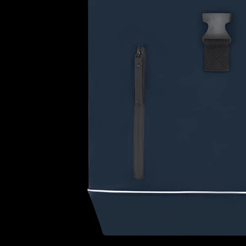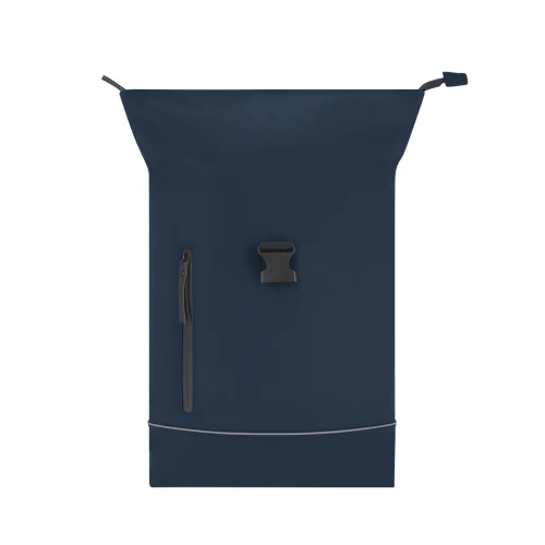 Mochila confeccionada en suave y resistente PU diseñada con tira reflectante en el frontal para mayor visibilidad. Con sistema de cierre enrollable con cremallera y hebilla ajustable. Interior de gran capacidad con compartimento interior acolchado para portátil de hasta 15 pulgadas. Dispone de un bolsillo frontal resistente al agua y cintas de hombros en PU y espalda acolchada para mayor comodidad. Incluye cinta trasera para ajuste en trolley o maleta, ideal para viajes y desplazamientos.