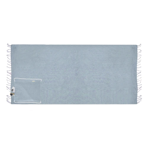 Mochila pareo de 180x 90cm en suave Algodón Reciclado de 170g/m2 con diseño a un color a conjunto con la mochila. Pareo con plegado especial que se recoge en mochila de cuerdas para cómodo transporte. Con logotipo Algodón Reciclado en etiqueta exterior.