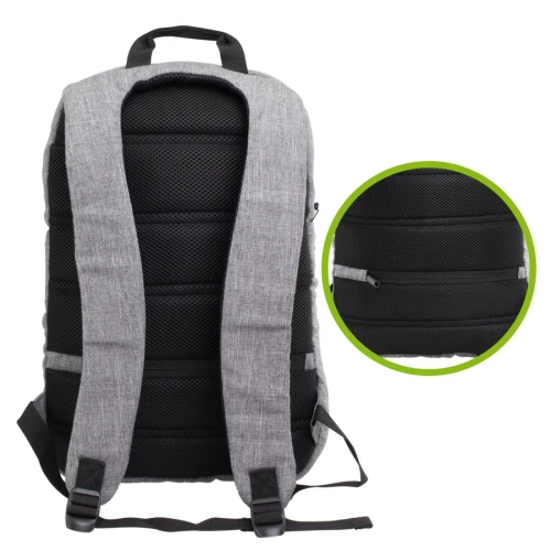 Mochila Porta-Notebook modelo "Norway". Tela PU 600D Two-Tone impermeable. Capacidad 9 litros, tamaño 29 x 45 x 7 cm. Incluye compartimento interior reforzado y acolchado para Laptop. Bolsillos interiores y delantero.
