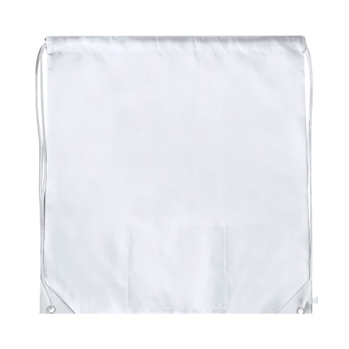 Mochila de cuerdas confeccionada en suave poliéster 210D. Posee cuerdas de autocierre, esquinas reforzadas en negro y argollas metálicas de refuerzo. Cuenta con un bolsillo frontal portadorsal y está disponible en una variada gama de colores (color blanco especialmente fabricado para marcaje en sublimación).