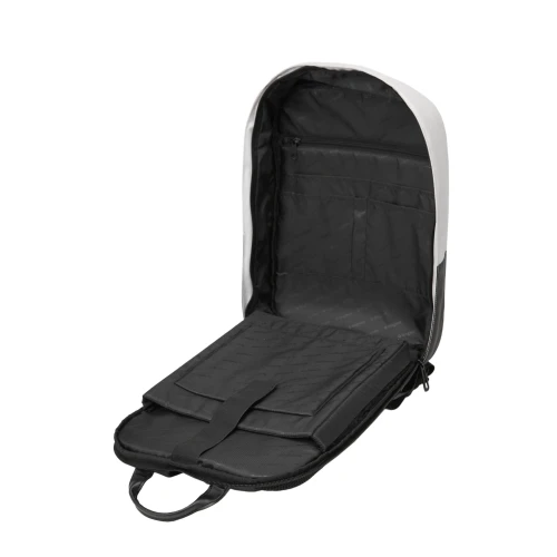 Mochila realizada en Poliester, con respaldo y correas acolchadas. El bolsillo principal con cierre es de apertura de 180°, tiene un espacio completamente acolchado para notebook y 5 bolsillos internos. Además, cuenta con un bolsillo con cierre, oculto en el respaldo para proteger objetos valiosos.