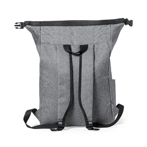 Mochila de línea nature fabricada en resistente 300D RPET, elaborado a partir de plástico reciclado, para así fomentar la reutilización de residuos plásticos y contribuir a la sostenibilidad del planeta. Bolsillo principal con cierre de hebilla y bolsillo lateral. Cintas acolchadas ajustables para hombro y distintivo RPET en etiqueta exterior.