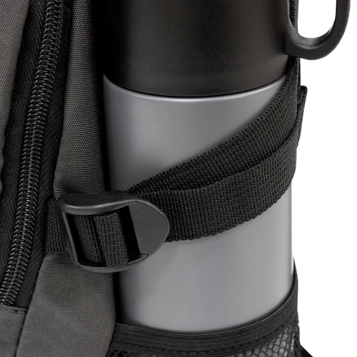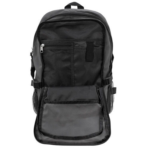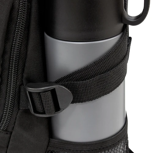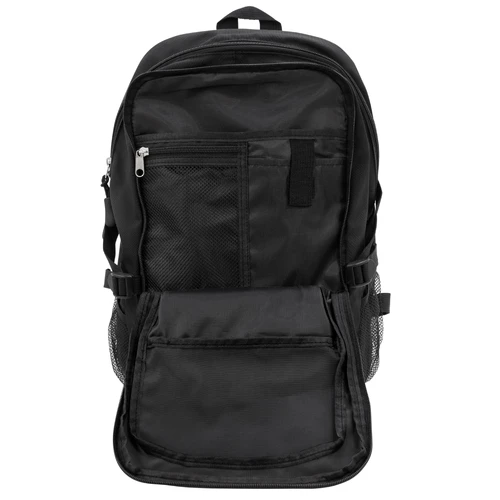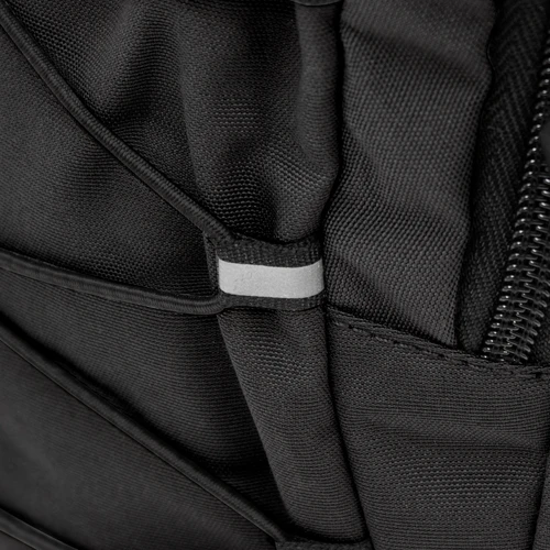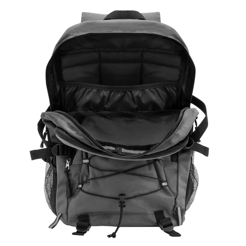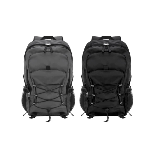 28 x 41 x 17 cm Capacidad 19 litros. Algodón y Poliester. Mochila outdoor. Múltiples espacios para transportar objetos. Compartimento principal con bolsillo elastizado. Bolsillo frontal con cierre, cordón elástico cruzado ajustable y dos bolsillos de red laterales y cintas de amarre. Detalles reflectivos. Cierres metálicos con tiradores de goma. Correas regulables y espalda acolchadas.