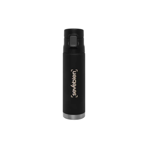 Ø 7 x 25,5 cm. Capacidad 500 ml. Acero inoxidable. Mug doble pared. Interior de acero 304 y exterior de acero 201. Tapa plástica con botón a presión de apertura. Traba de seguridad. Mantiene las bebidas frías y calientes por más tiempo. Presentación en caja de regalo.