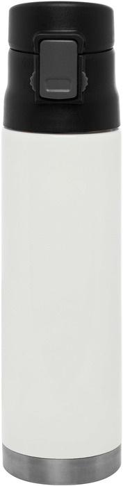 Ø 7 x 25,5 cm. Capacidad 500 ml. Acero inoxidable. Mug doble pared. Interior de acero 304 y exterior de acero 201. Tapa plástica con botón a presión de apertura. Traba de seguridad. Mantiene las bebidas frías y calientes por más tiempo. Presentación en caja de regalo.