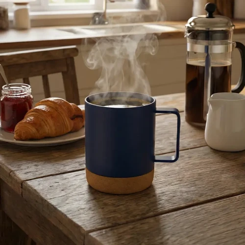 Jarro plástico con base de corcho natural, fabricado en polipropileno. Cuenta con diseño moderno, superficie mate y base antideslizante que protege superficies del calor. Es ideal para disfrutar bebidas calientes en el hogar o la oficina con estilo y comodidad.
