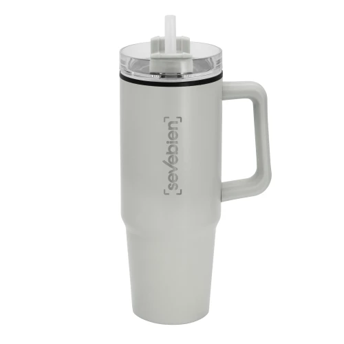 El acompañante ideal para cualquier ocasión. Mug doble pared con sorbete. Interior de plástico Polipropileno y exterior de acero 201. Tapa plástica transparente a rosca con anillo de silicona. Cierre giratorio porta sorbete. Sorbete plástico translucido. Pintura exterior con acabado mate. Mantiene las bebidas frías y calientes por más tiempo. Medidas: Ø 8,8 cm x 24 cm.