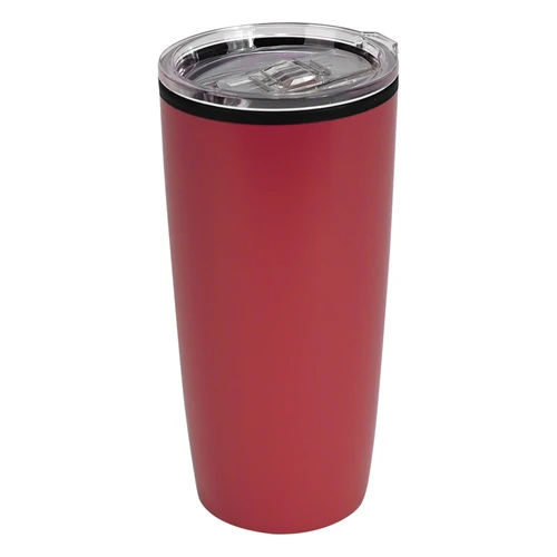 Mug metálico doble pared aislante, interior plástico PP, exterior Acero inoxidable 201 SS, recubierto con pintura POWDER COAT, modelo "LOFT". Producto BPA FREE, para el contacto con líquidos y alimentos. Fondo de silicona negra ABS anti-deslizante. Tapa removible de plástico PS Crystal Clear con sello cilíndrico de silicona. Capacidad 600ml. Presentación en bolsa PP + caja de regalo de cartón negro.