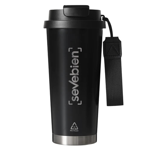 Ideal para jornadas largasMug doble pared, sellado al vacío. Interior en acero 304 y exterior en acero 201. Tapa de polipropileno a rosca y anillo de silicona, 2 en 1, con bombilla de polietileno incorporada, seguro antiderrame a presión y correa de poliéster. Tapa y correa del mismo color que el vaso. Pintura con acabado mate, textura suave al tacto. Base en acero 201. Mantiene hasta 12 hs la temperatura de las bebidas calientes y 24 hs de las bebidas frías.Medidas: Ø 9 x 19 cm.