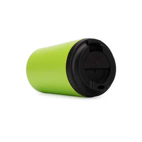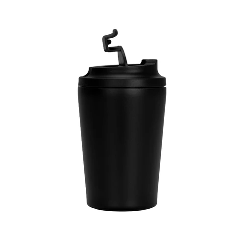 Mug térmico metálico "NORWAY" doble pared aislante, cubierta de Polipropileno (PP) acabado mate, interior Acero inoxidable 304 SS, exterior Acero inoxidable 201 SS. Capacidad 355ml. Incluye tapa rosca de polipropileno negro, con dosificador y argolla de silicona negra anti-derrame. En su parte inferior, cuenta con goma de silicona negra anti-deslizante. Producto BPA FREE, para el contacto con líquidos y alimentos. Ideal para café, té, bebidas frías o calientes. Tapado correctamente, aisla líquidos calientes o fríos por más de 12 horas. Presentación en plástico burbuja + caja de cartón laminado negro. PRECAUCIÓN: no usar en horno microondas ni llenar con bebidas gaseosas.