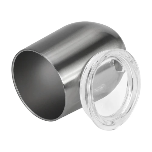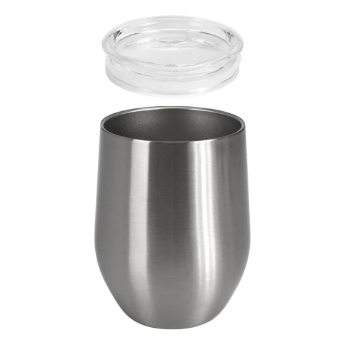 Mug metálico térmico doble pared aislante de Acero inoxidable 201 SS color plateado, para Sublimación. Producto BPA FREE, para el contacto con líquidos y alimentos. Tapa removible de plástico PS Crystal Clear con sello cilíndrico de silicona. Capacidad 350ml. Presentación en bolsa PP + caja de regalo de cartón blanco.