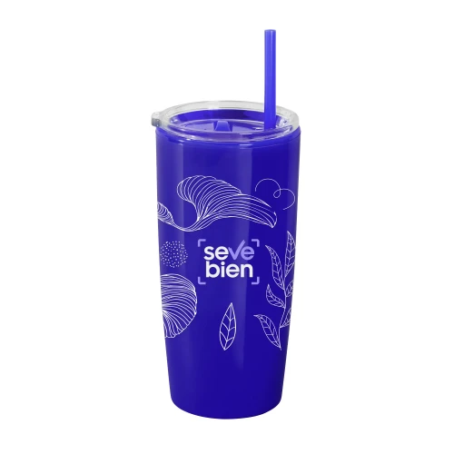 Disfruta de tus bebidas favoritas con comodidad.Mug doble pared con sorbete. Tapa plástica transparente a presión con anillo de silicona. Sorbete de polipropileno y cierre deslizante del mismo color que el cuerpo. Cuerpo con acabado brillante. Medidas: Ø 9 cm x 18,6 cm.