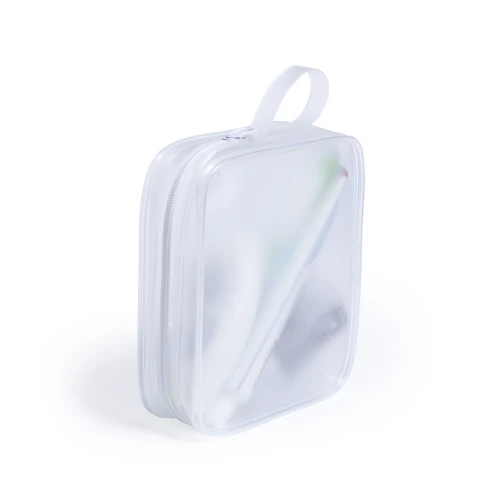 Neceser multiusos de alta calidad en resistente material EVA translúcido en vivos colores. Con cierre de cremallera en color blanco y asa de transporte a juego.
