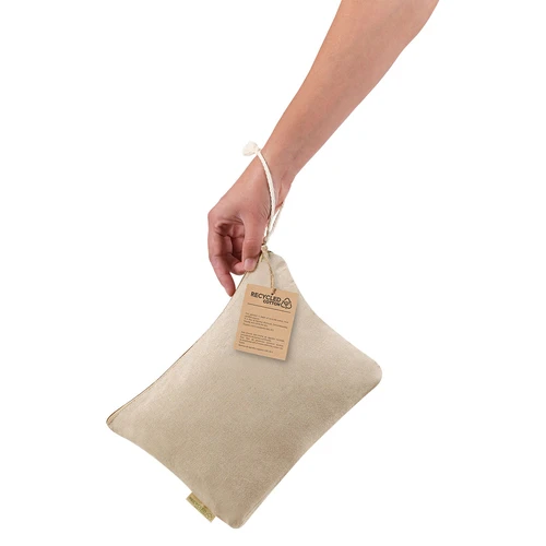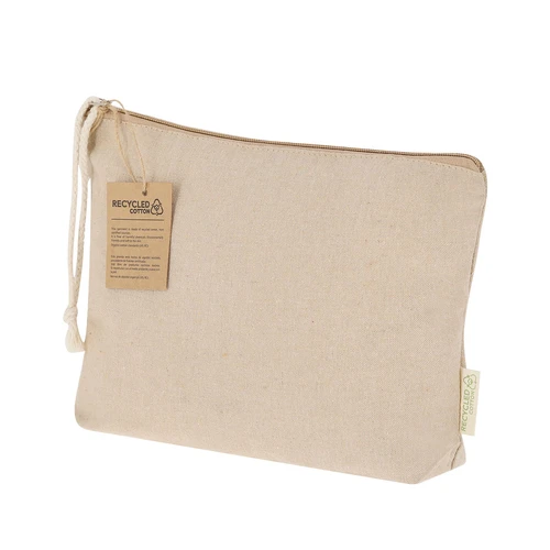 Neceser fabricado en 100% algodón reciclado en elegante tono natural. Compartimento principal con cierre de cremallera y cordón de transporte a juego. Incluye etiqueta exterior con logotipo algodón reciclado.