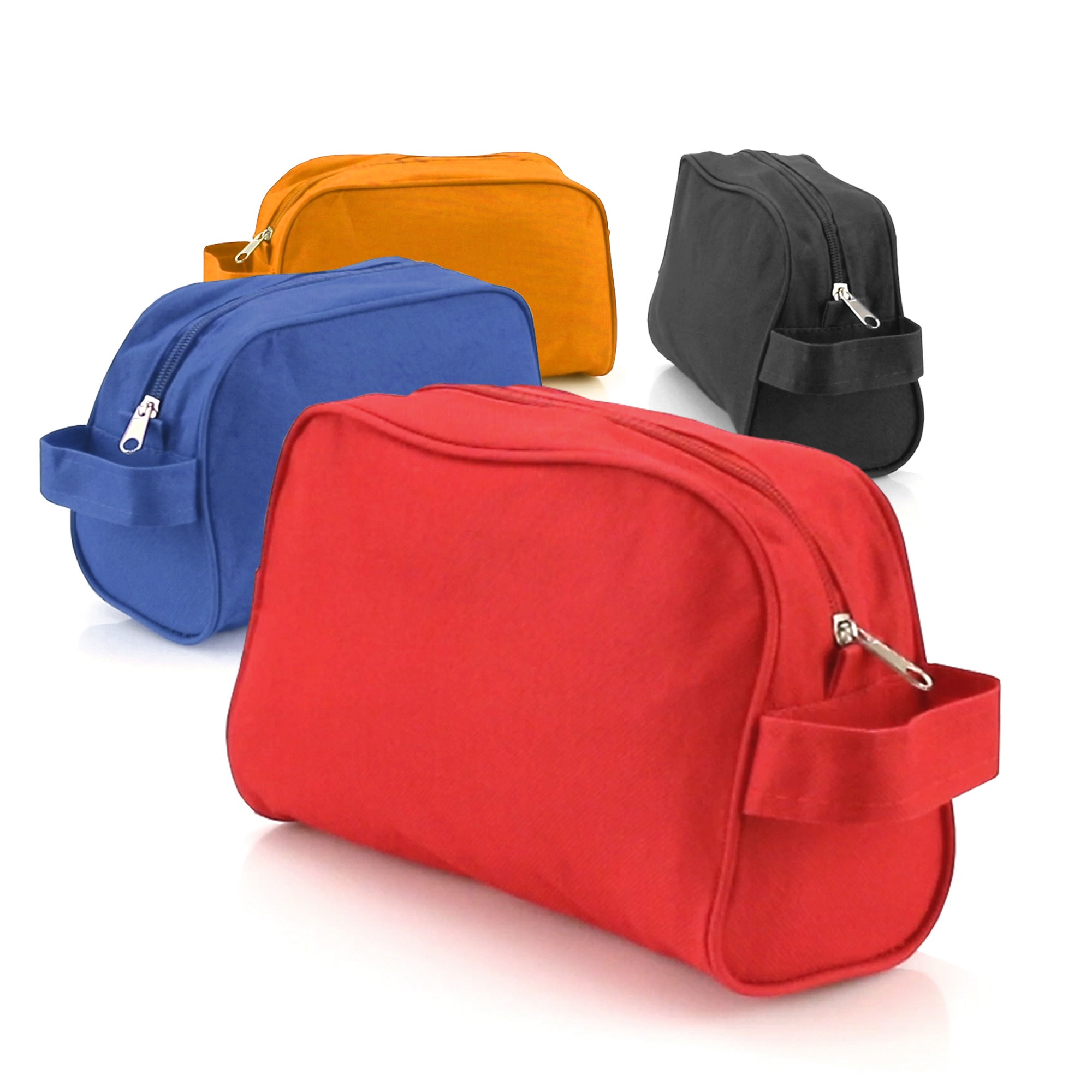 Neceser multiusos en resistente poliéster 600D de vivos colores. Con cremallera, asa de transporte y ribete de refuerzo a juego.