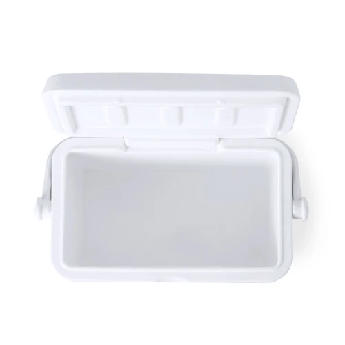 Nevera fabricada en PP de 4L. Atractivo diseño vintage para mantener bebidas y alimentos fríos, de diseño rígido con doble pared. Tapadera de bisagra con cierre de seguridad y asa rígida para un fácil transporte. Con base de color gris y accesorios en blanco. Presentada individualmente en bolsa reciclada.