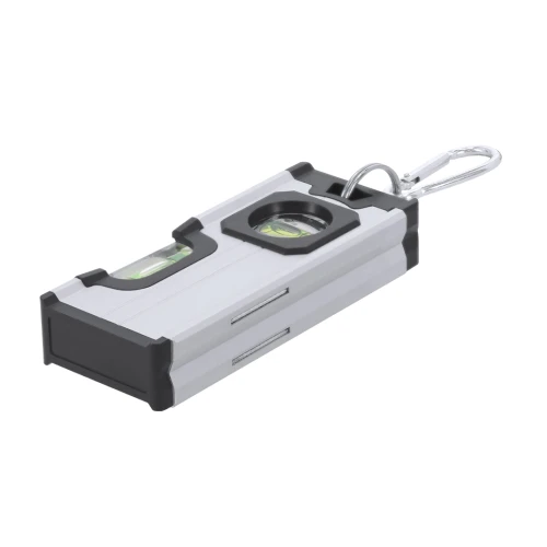 Nivel magnético fabricado en Aluminio. Con niveles en posición vertical y horizontal. En extremo lateral incluye un mosquetón plateado para fácil transporte. Base magnética para mayor precisión de nivelación.