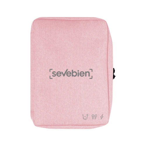 16,5 x 23 x 4 cm.Poliéster. Organizador para cables y accesorios. Cuenta con dos bolsillos de red con cierre. 4 elásticos que permiten arrollar y guardar los cables, 1 elástico porta bolígrafo y 2 elásticos amplios. NO INCLUYE ACCESORIOS.