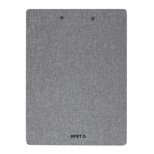 Excelente organizador en suave poliéster RPET 300D tamaño A4. Con resistente pinza para documentación y práctico gancho porta bolígrafos. Con distintivo de RPET en el reverso. El material RPET se elabora a partir de plástico reciclado, para así fomentar la reutilización de residuos plásticos y ayudar a la sostenibilidad del planeta.