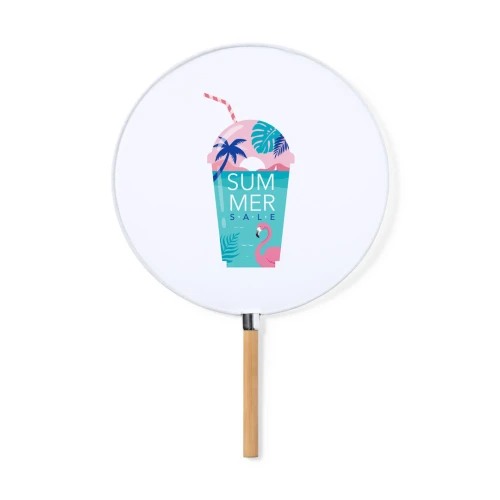 Elegante Pai Pai fabricado en resistente poliéster especial para sublimación. Con mango en bambú y detalle en cromado.