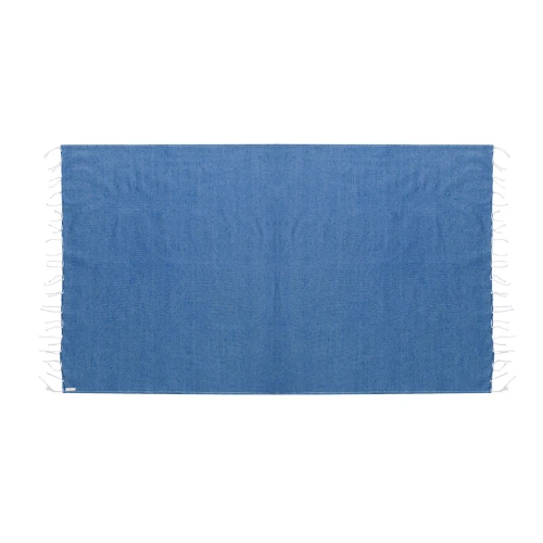 Pareo toalla de 180g/m2 en combinación de algodón reciclado y RPET. El material RPET se elabora a partir de plástico reciclado, para así fomentar la reutilización de residuos plásticos y ayudar a la sostenibilidad del planeta.