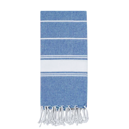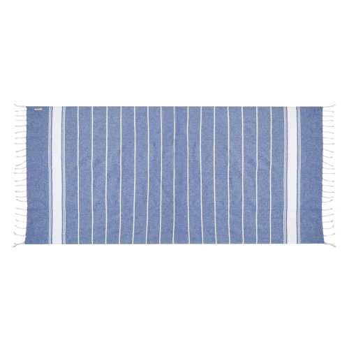 Suave pareo toalla en 100% algodón reciclado de 180g/m2. Disponible en variada gama de colores en tono bicolor. Logotipo en etiqueta lateral. Presentado individualmente en bolsa.