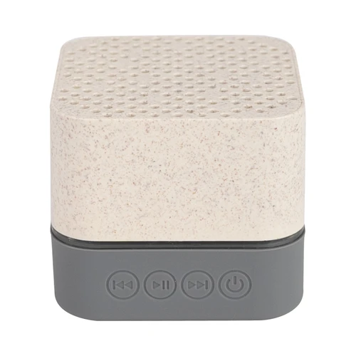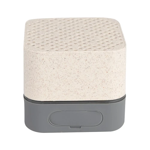 Parlante altavoz de caña de trigo (wheat straw) "LIFE" con juego de luces LED y sección inferior de silicona gris con funciones.