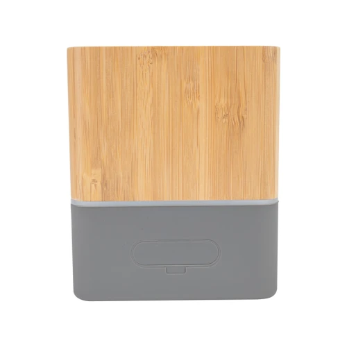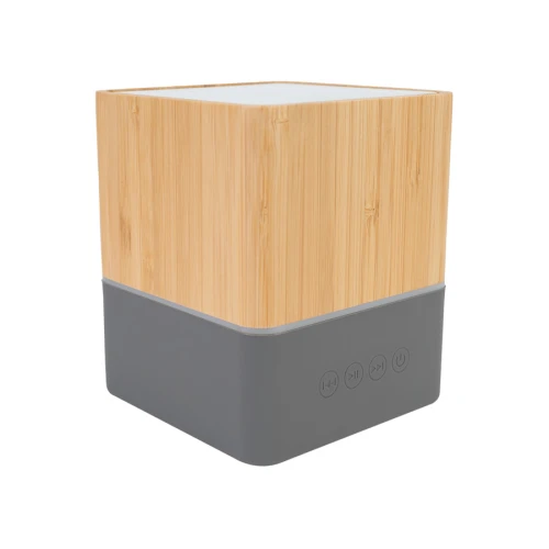Parlante altavoz grande de Bamboo "GREAT" con juego de luces LED y sección inferior de silicona gris con funciones. Parlante de gran potencia, un regalo ideal para los que disfrutan del buen sonido.
