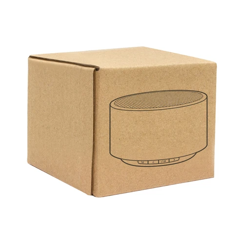 Ø7,5 x 4 cm. Parlante Bluetooth. Caja redonda de Bambú color natural con malla metálica en la parte superior. Base negra con panel de control. Permite recibir llamadas. Micrófono incorporado. Versión bluetooth: 5.0. Batería: 300 mAh. Potencia: 3W. Cable de carga y conexión USB tipo C en color negro. Presentación en caja de regalo Kraft.