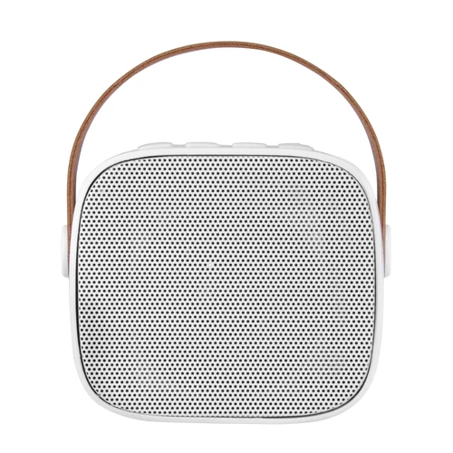 Potencia tu sonido en cualquier lugarParlante Bluetooth estéreo con radio FM, tarjeta TF y entrada AUX. Estructura plástica color blanco y asa en poliuretano color marrón. Cable de carga y conexión USB-C en color blanco. Incluye manual de uso.Medidas: 8,5 x 6,5 x 7,3 cm.