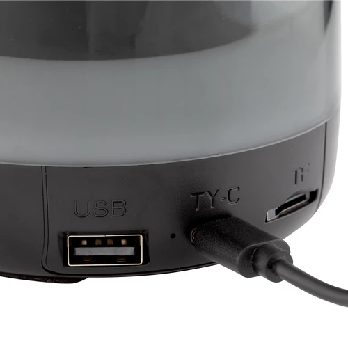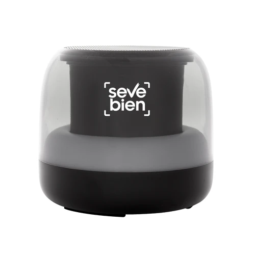 Sonido envolvente y luces vibrantes.Parlante Bluetooth estéreo con tarjeta TF y radio. ABS transparente con malla metálica en la parte superior. Led que cambia entre 7 colores y 7 modos de luz para elegir. Potencia 5W. Frecuencia 100HZ - 20K HZ. Versión Bluetooth: 5.3. Capacidad de la batería: 800 mAh. Cable de carga y conexión USB-C en color negro. Medidas: Ø 9,4 cm x 8,2 cm.