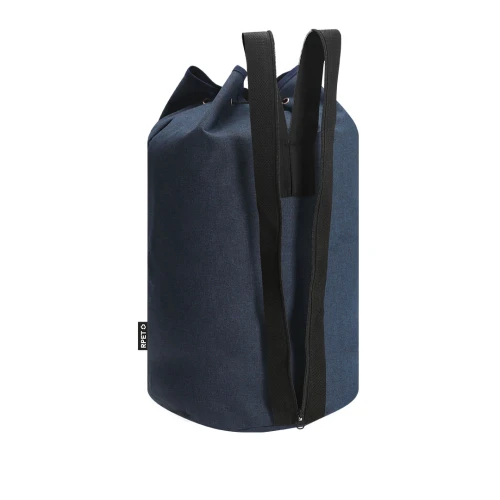 Petate multiusos de gran capacidad en resistente poliéster RPET 600D. Cierre superior de cuerda con accesorio de ajuste y argollas metálicas reforzadas. Cinta de hombros trasera 2 en 1 con cierre de cremallera para transporte en un solo hombro o en los dos. Con distintivo de RPET en etiqueta.El material RPET se elabora a partir de plástico reciclado, para así fomentar la reutilización de residuos plásticos y ayudar a la sostenibilidad del planeta.